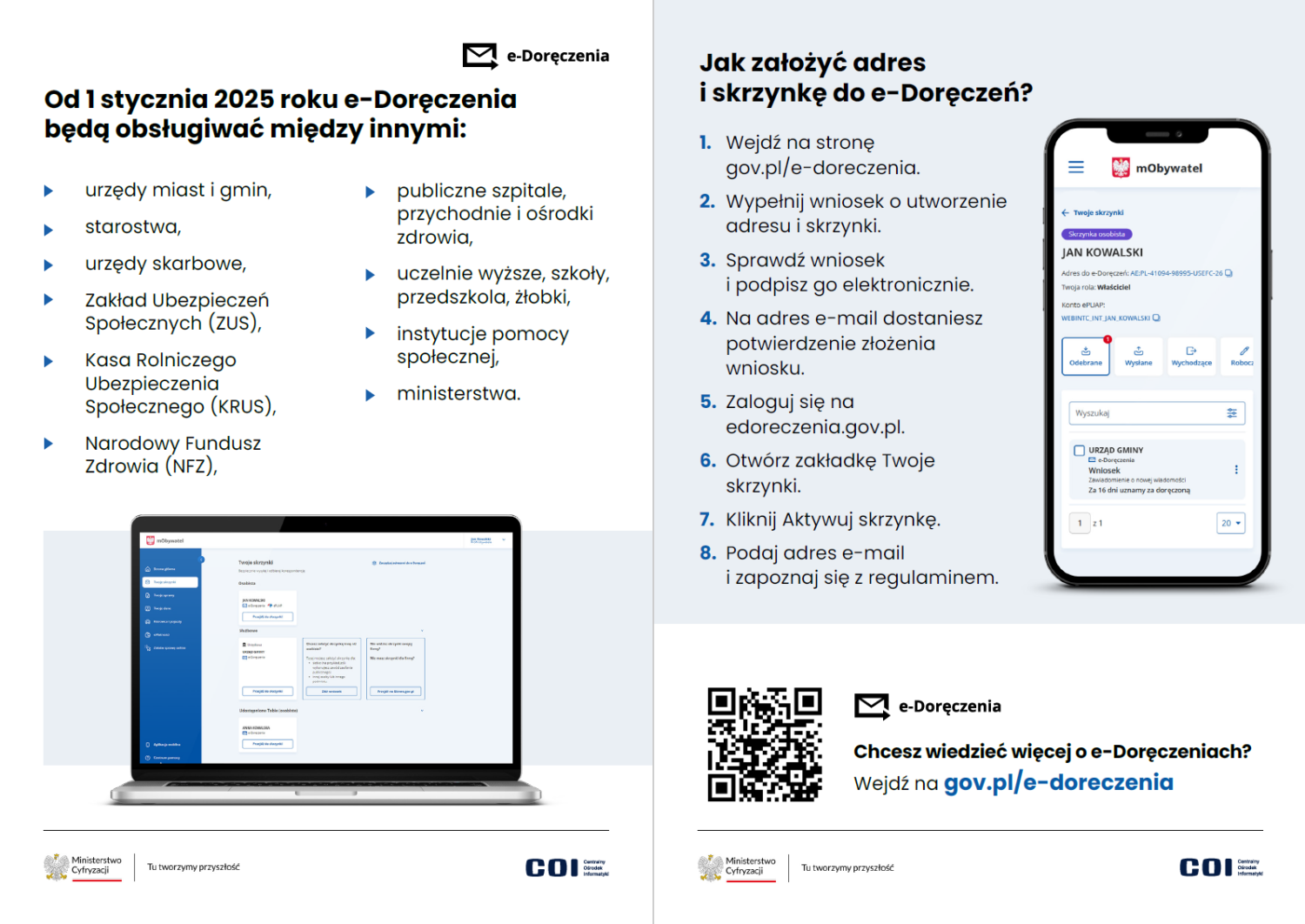 Zachęcamy do założenia adresu do e-Doręczeń już dziś i załatwiania spraw urzędowych przez internet.